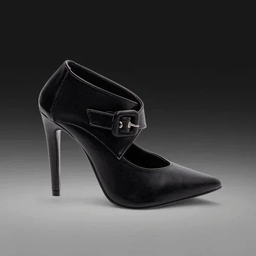 Scarpin Salto Fino Verniz Preto com Tela e Fivela Dourada