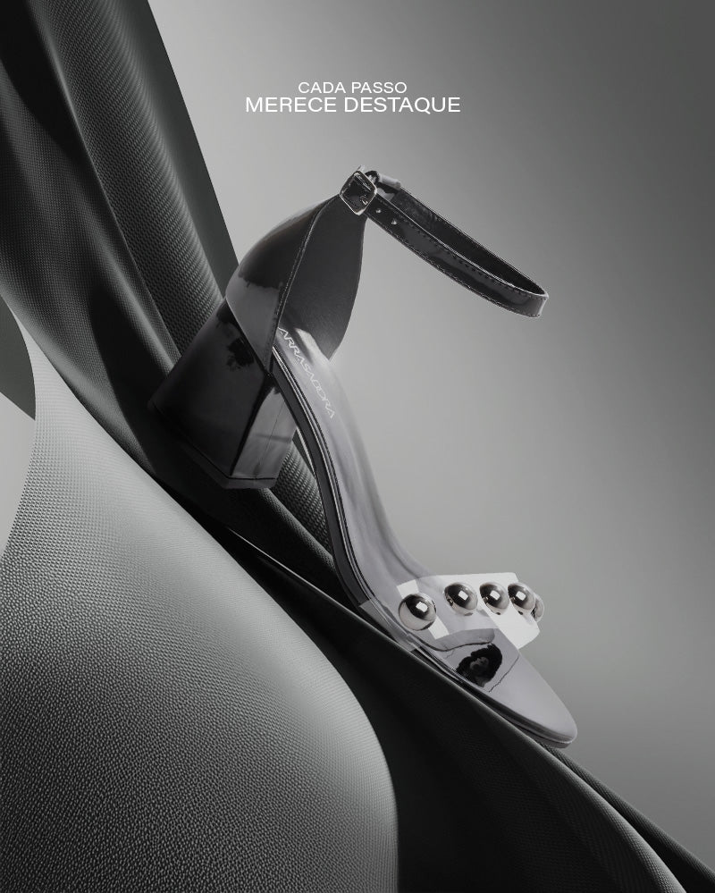 Sandália Salto Fino Nobuck Preto com Metalizado Ouro Light