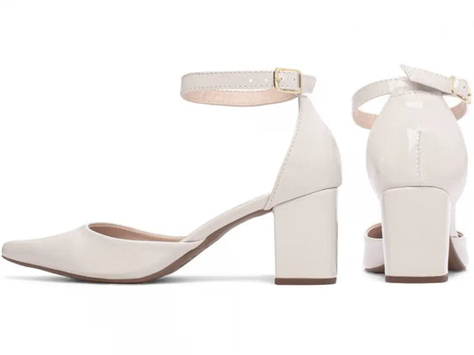 Sapato Scarpin Feminino Verniz Off White Confortável com Salto 6,5 cm