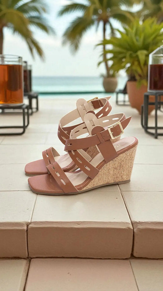 Sandália Anabela Feminina Caramelo com Fivela Dourada