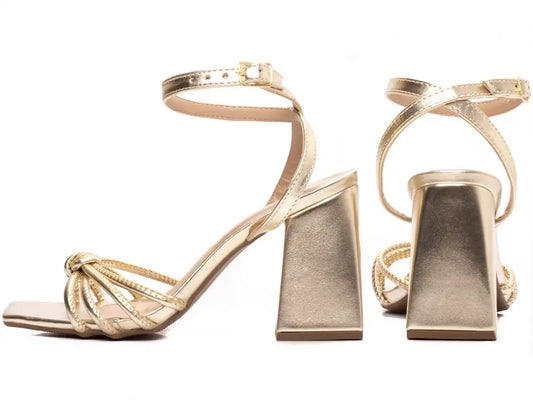 Sandália Ouro Light Salto Grosso 9cm Confortável
