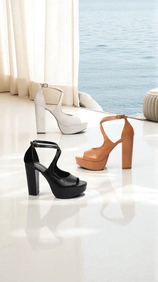 Sandália Meia Pata Caramelo Feminina Salto Alto Bloco