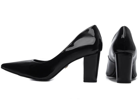 Sapato Scarpin Feminino Verniz Preto Salto Médio