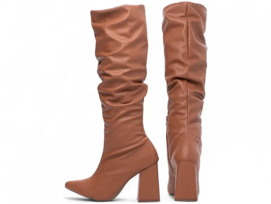 Bota Franzida Feminina Napa Caramelo Salto 9cm