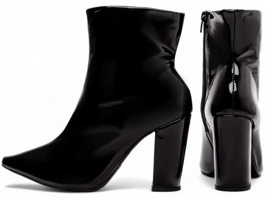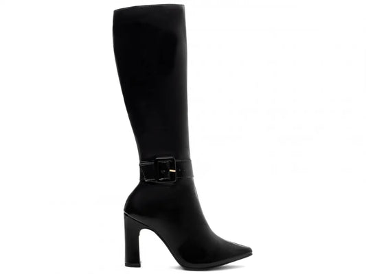 Bota Feminina Verniz Preto Salto Alto Confortável