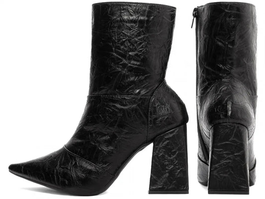 Bota Franzida Feminina Napa Preto Salto 9cm