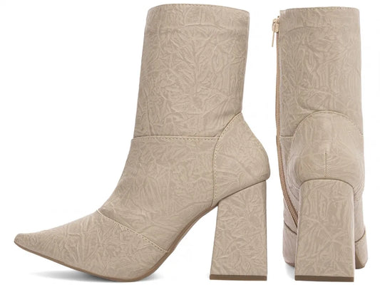 Bota Bico Fino Napa Vintage Bege Flor Caramelo