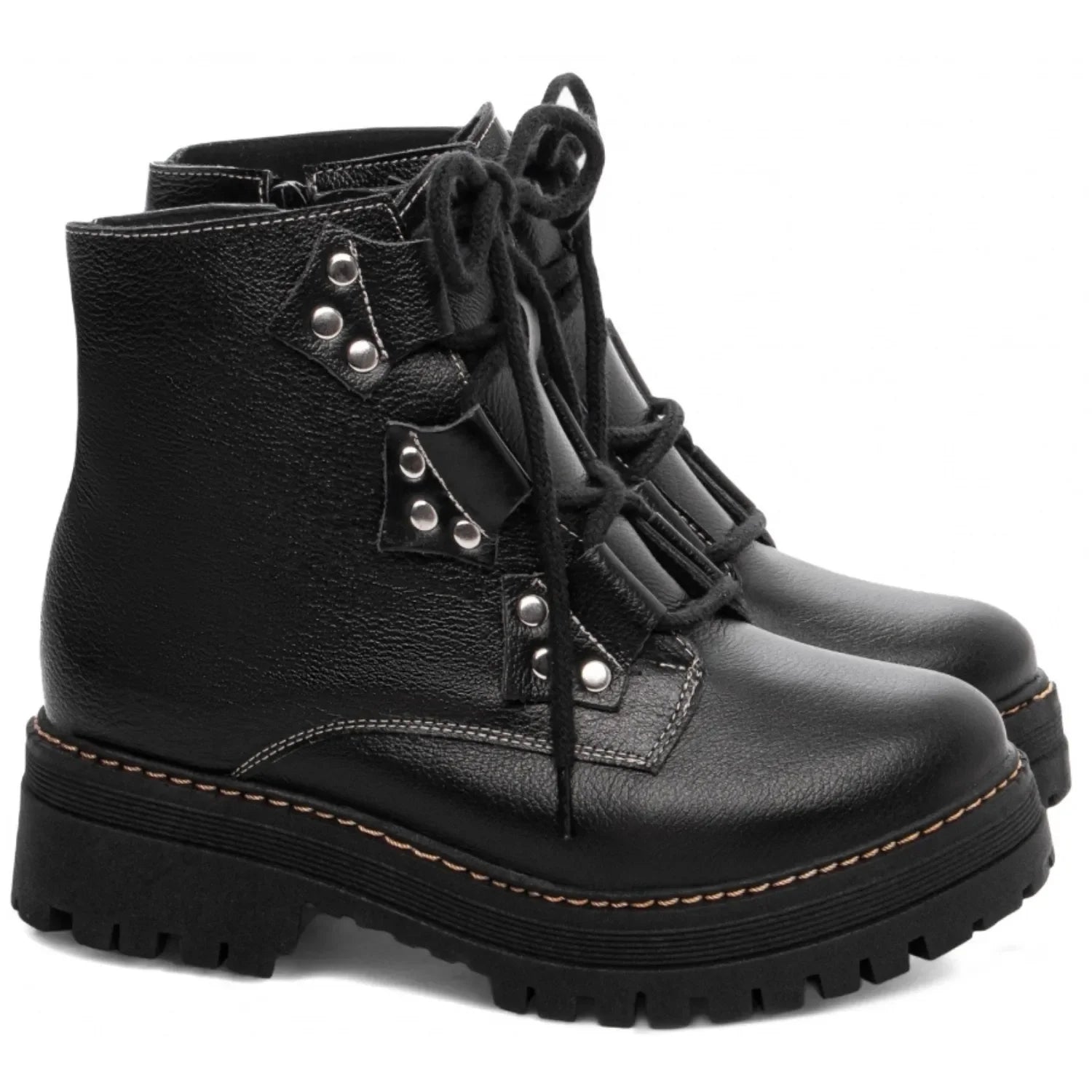 Bota Coturno Sola Tratorada Couro Preto Torricella 22A - Hyly Prime