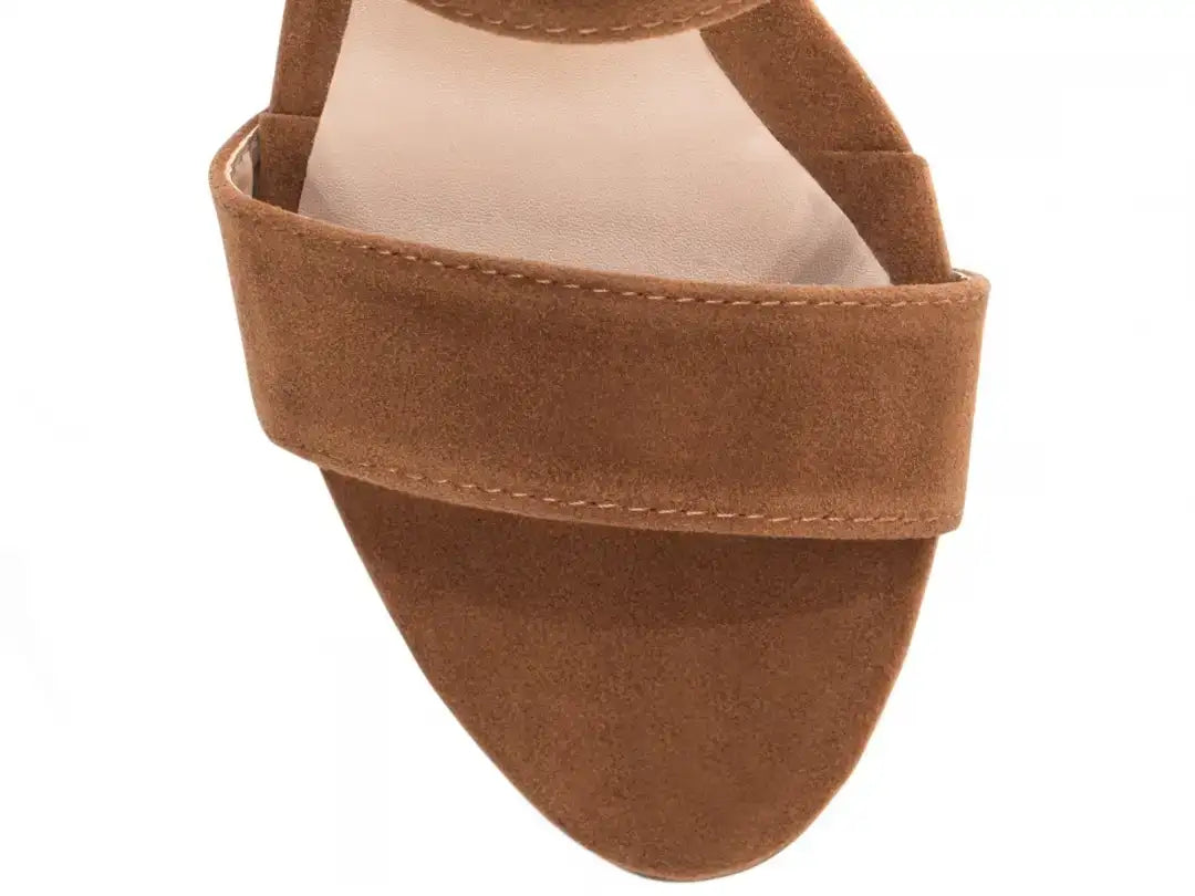 Confeccionada em camurção caramelo, essa sandália transmite charme, suavidade e um visual acolhedor, sendo perfeita para mulheres que buscam estilo e conforto para o dia a dia, trabalho, passeios, viagens e produções casuais elegantes.