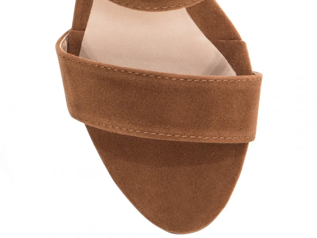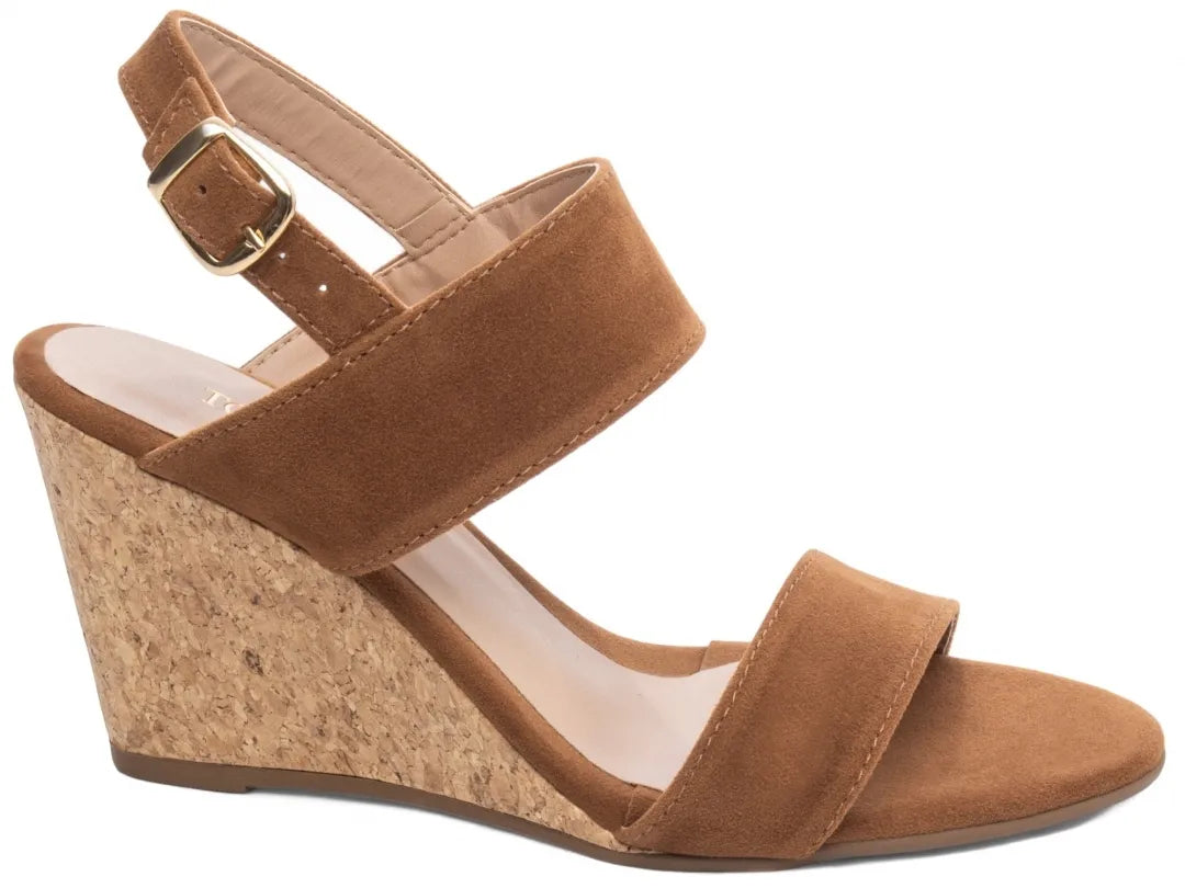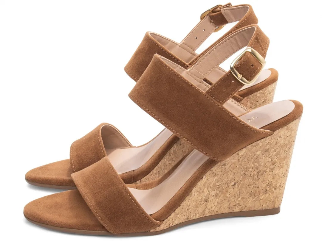 A Sandália Anabela Torricella Camurção Caramelo une versatilidade, elegância e conforto.