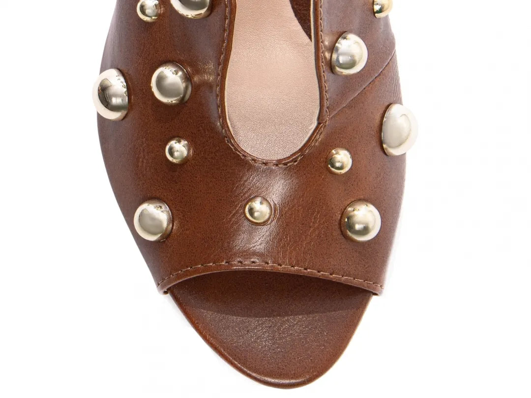 Sandália Ankle Boot Feminina Napa Caramelo com Detalhes Dourados Salto Grosso 7 cm – Hyly Prime