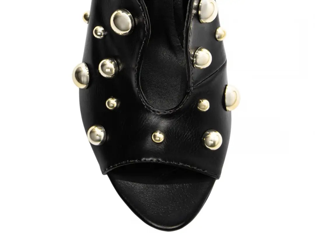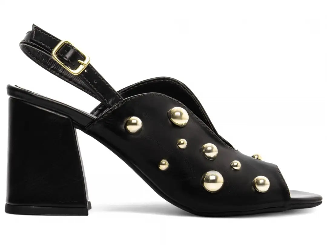 Sandália Feminina Napa Preto com Detalhes Dourados Salto Grosso 7 cm – Hyly Prime