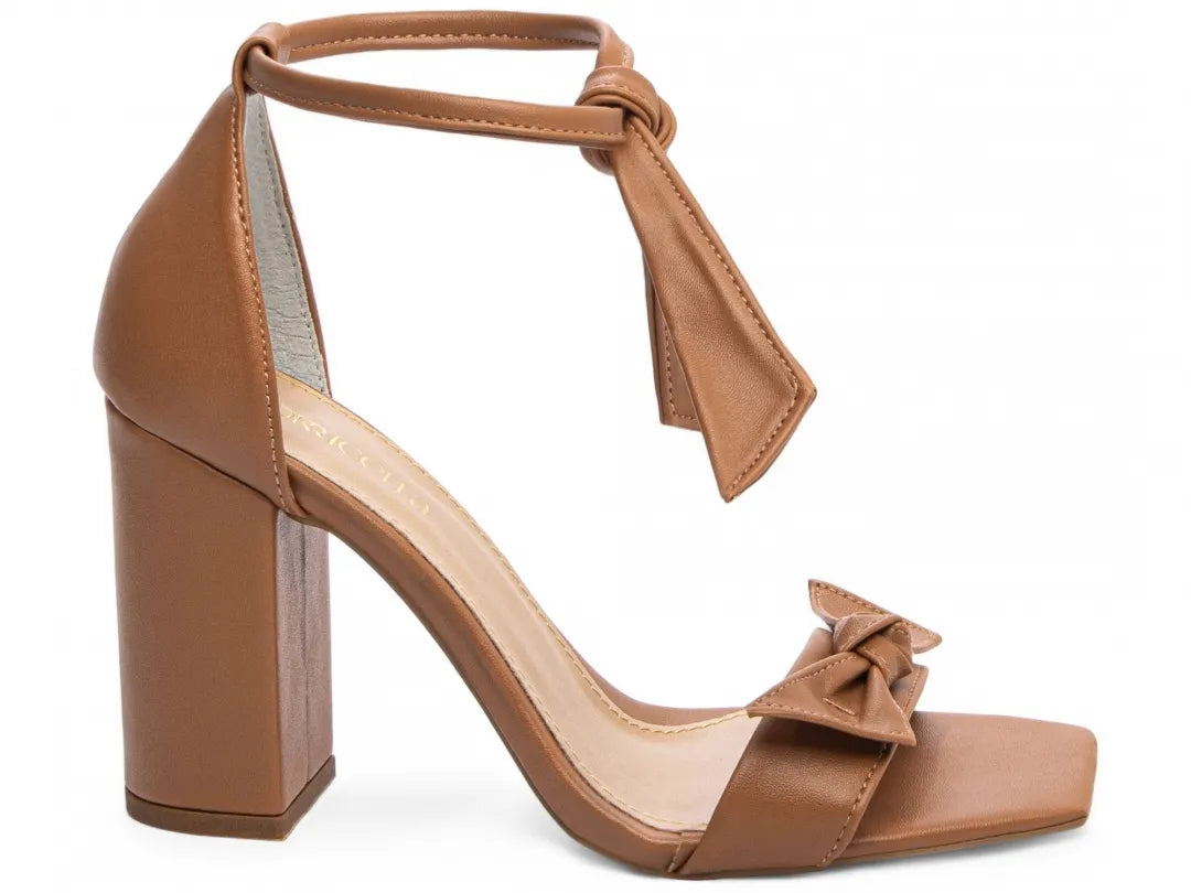 Sandália Feminina Napa Caramelo com Laço Nó Salto 8,5 cm