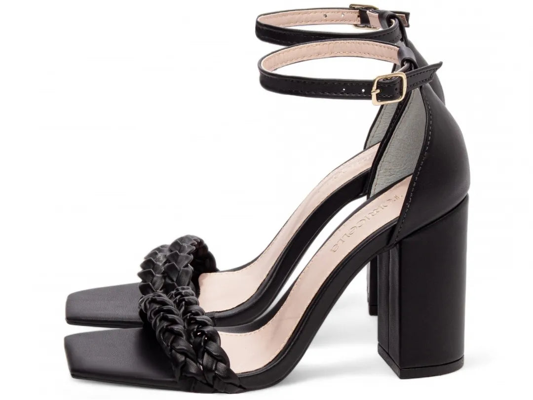 Sandália Feminina Napa Preto com Tiras Trançadas Salto 8,5 cm – Hyly Prime