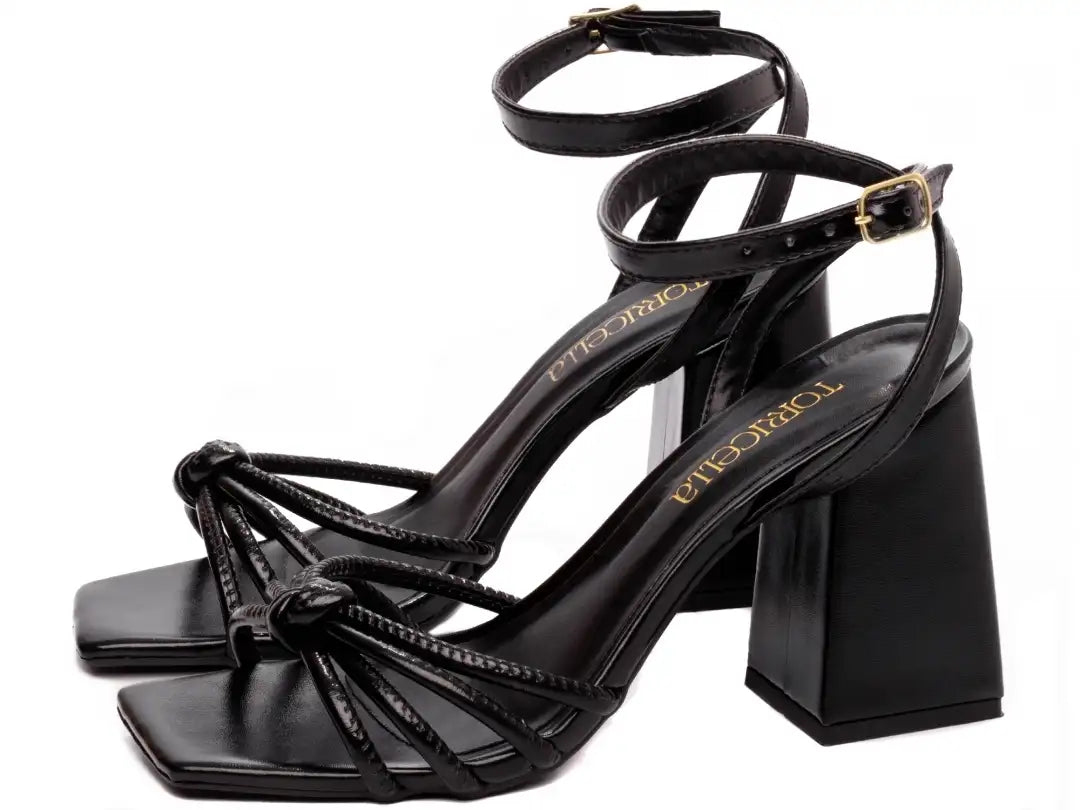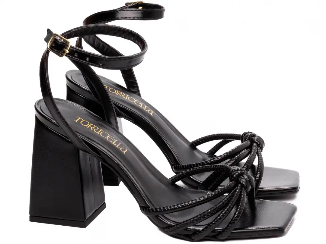 Sandália Feminina Preta Salto 9 cm Estável e Sofisticada