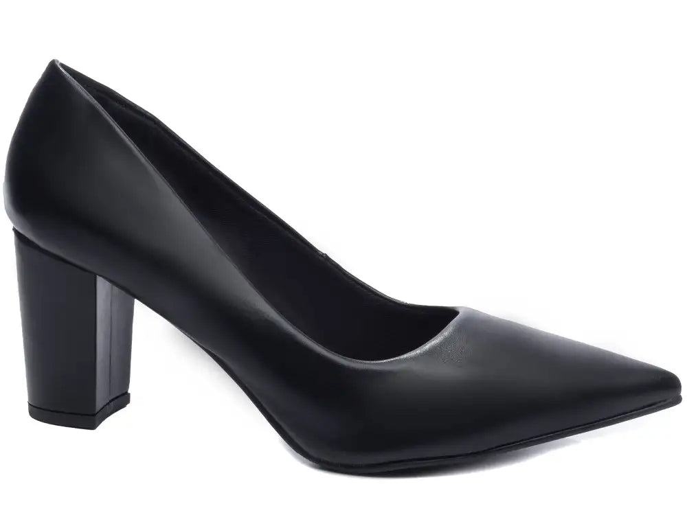Sapato Scarpin Feminino Napa Preto Salto Bloco Grosso 8,5 cm Numeração Especial – Coleção FINEST