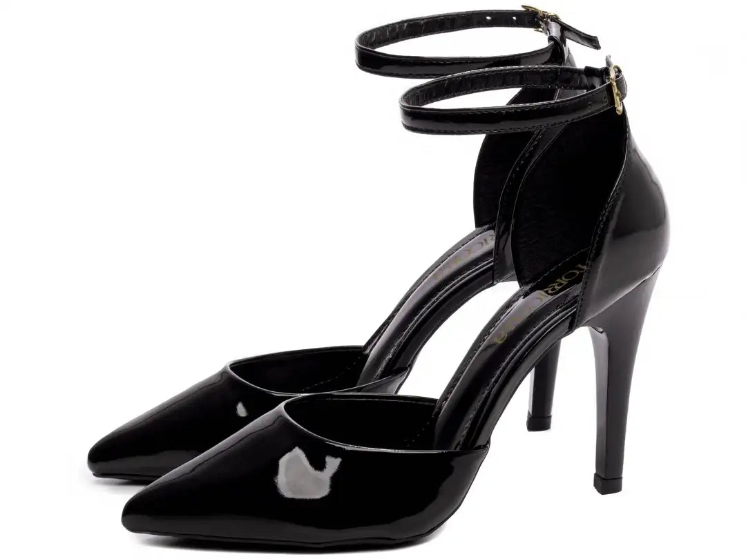 O salto alto de 10 cm, pintado na cor preta, garante postura elegante e alonga a silhueta com feminilidade. A fivela de ajuste dourada adiciona um toque de luxo e requinte ao design, além de contribuir para melhor encaixe aos pés. A palmilha Confort com 8 mm em EVA, revestida em verniz preto e acompanhada de taloneira no mesmo material, proporciona maciez, conforto e excelente absorção de impacto. O forro sintético preto oferece conforto interno, enquanto o solado em PVC antiderrapante garante segurança e estabilidade ao caminhar.
