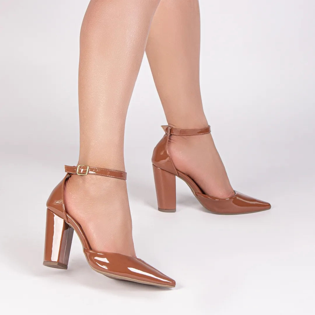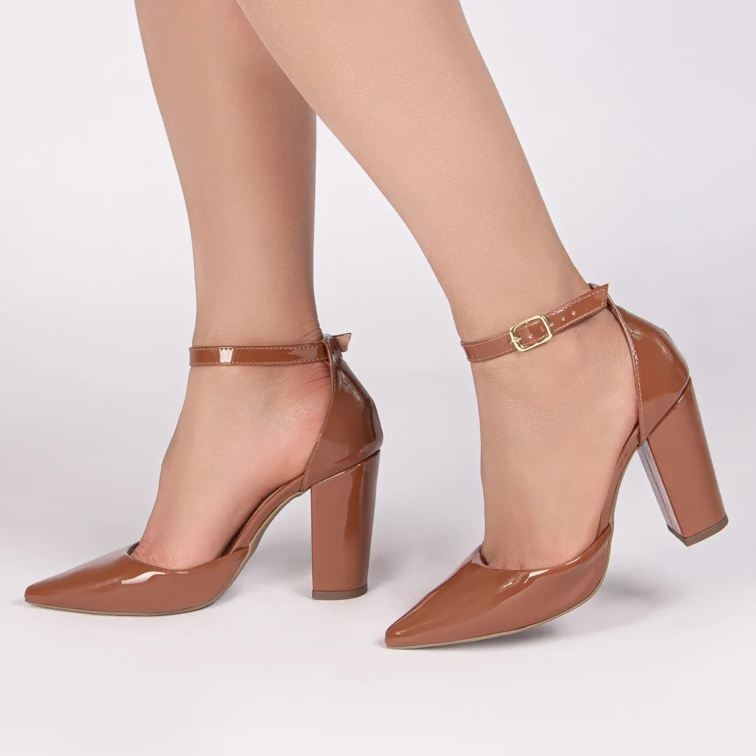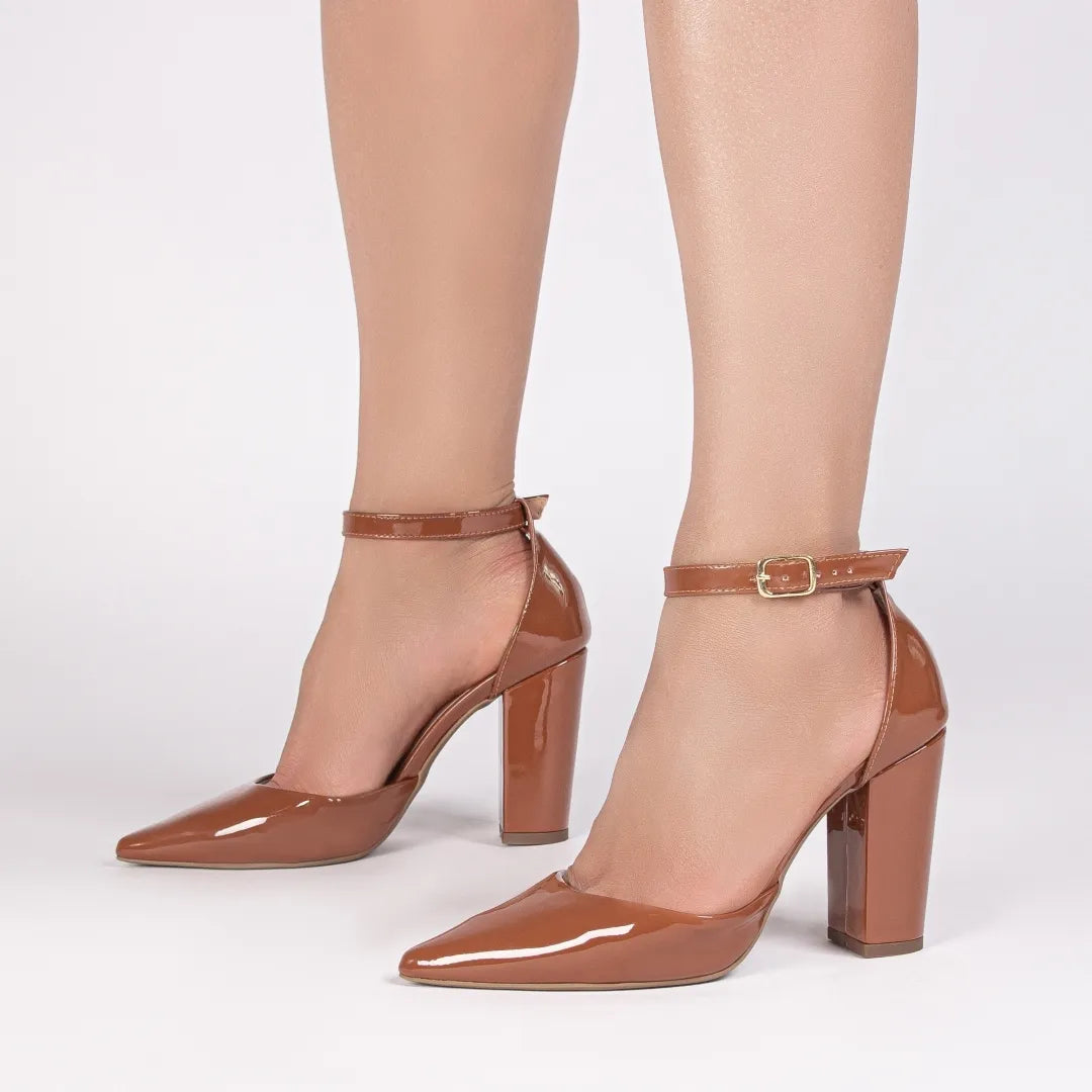 Sua fivela dourada adiciona charme ao calçado, enquanto o salto fino de 9 cm alonga a silhueta com delicadeza e presença. A palmilha acolchoada em EVA de 8 mm e o forro cacharrel espumado garantem maciez e conforto a cada passo.