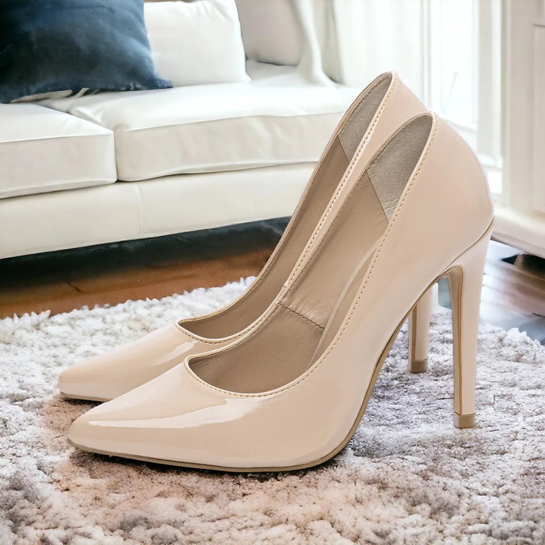 Scarpin Salto Alto Verniz Bege 12 cm – Hyly Prime