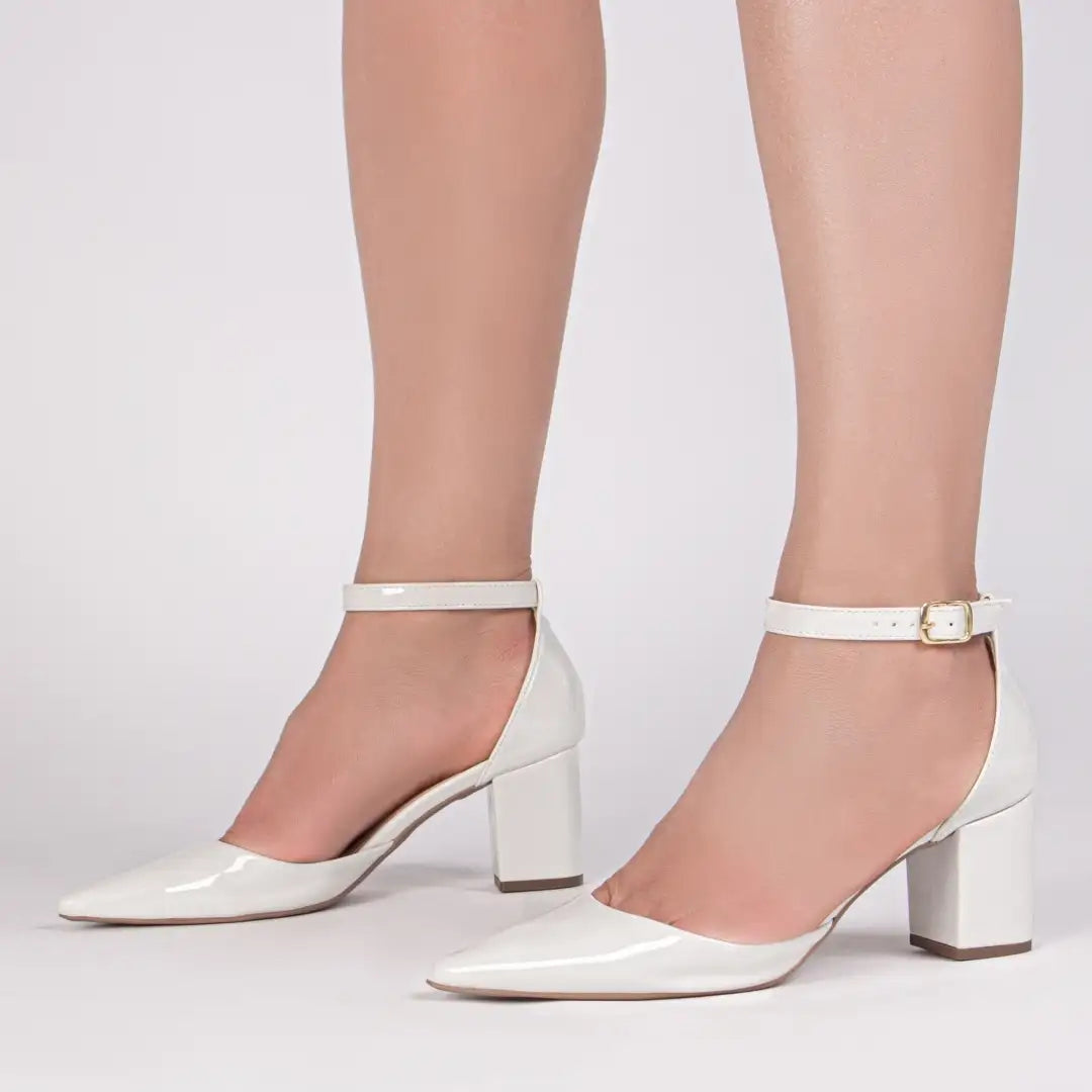 – Salto médio de 6,5 cm: elegância e estabilidade na medida certa.